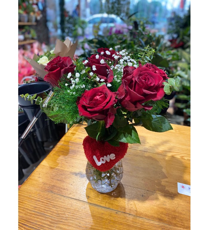 Kristal Vazoda 6 Gül Aranjmanı